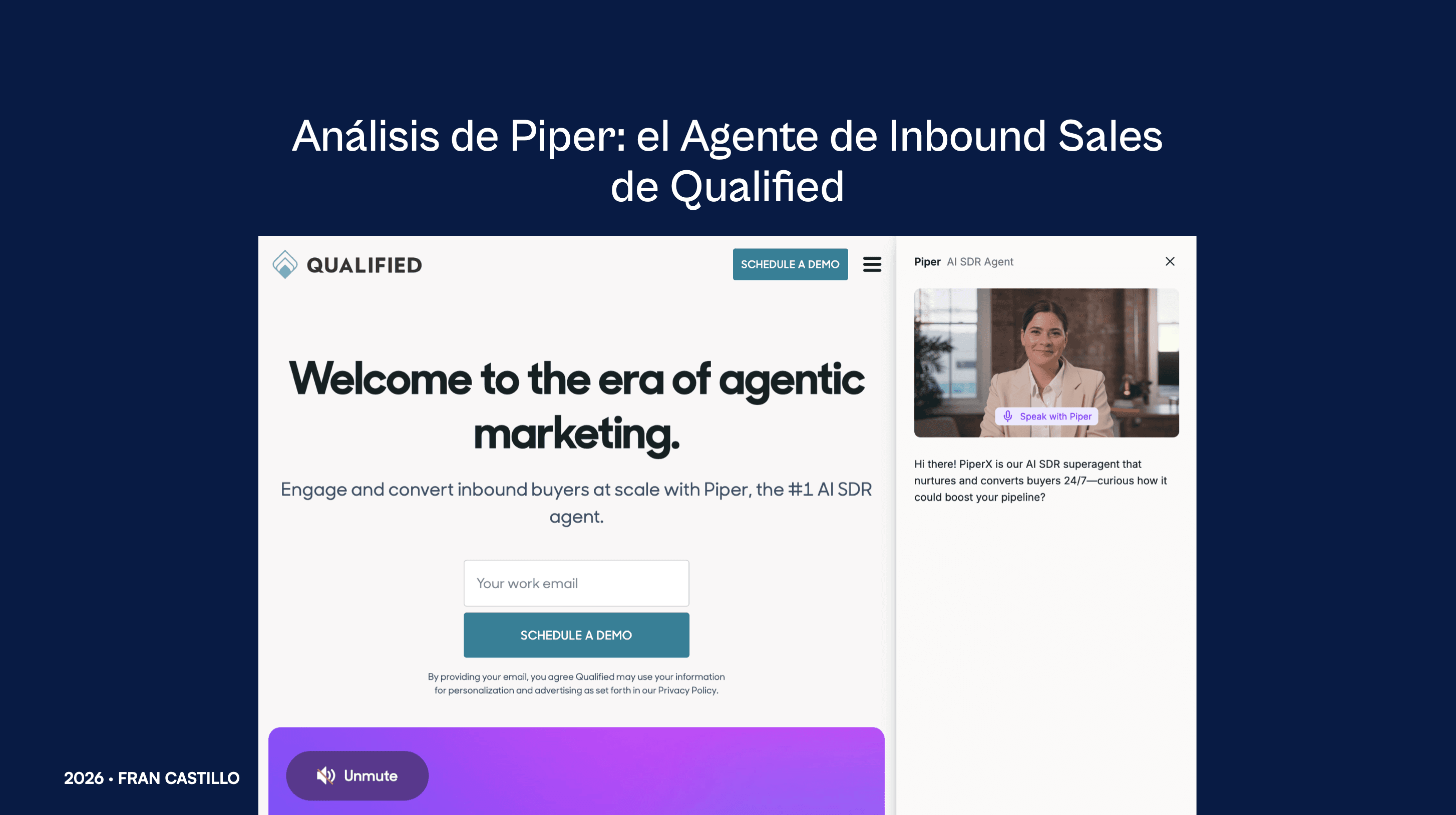 En este análisis exploro la propuesta de valor de Piper, el agente de Inbound Sales desarrollado por Qualified y recientemente adquirido por Salesforce.