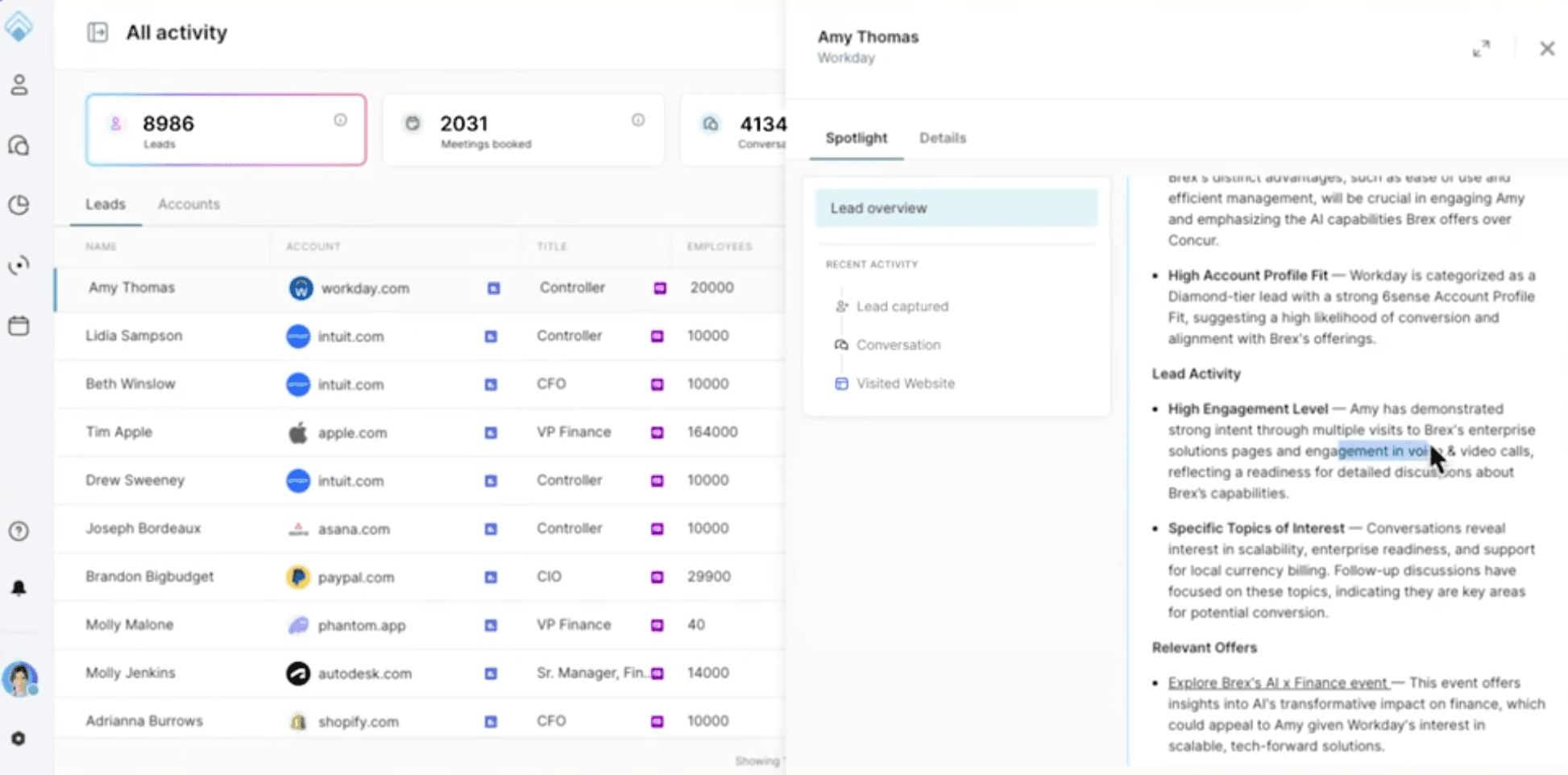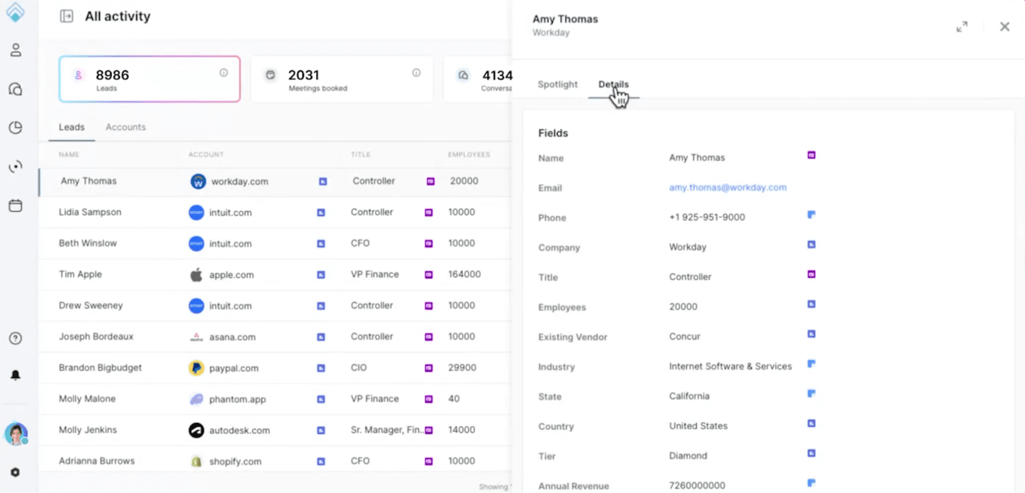 Acceder a información enriquecida de cada lead (por ejemplo, vía ZoomInfo o Clearbit).
