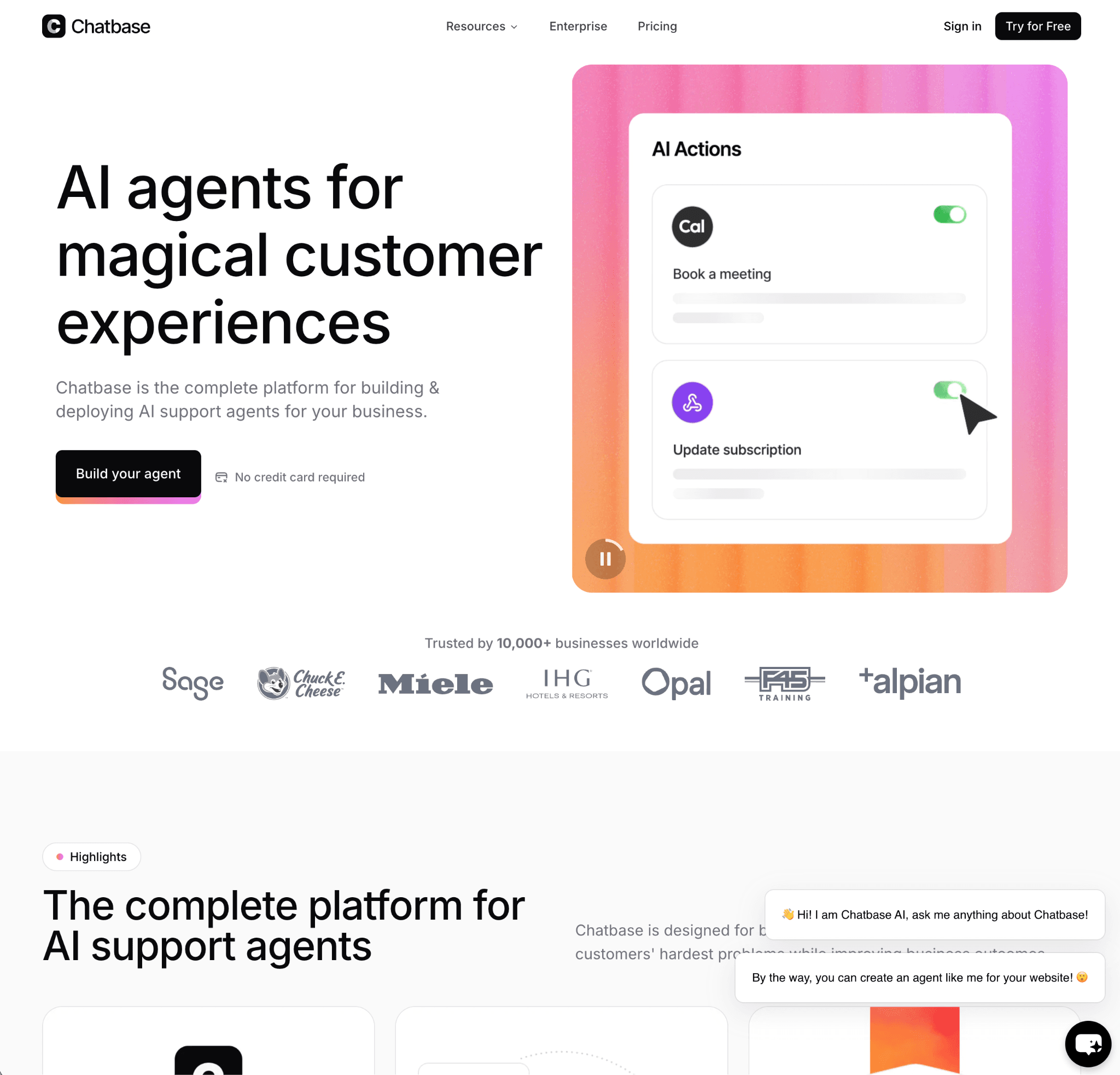 Chatbase es una plataforma SaaS que permite a las compañías construir, entrenar y desplegar agentes conversacionales de soporte y atención al cliente de forma muy sencilla. Su solución permite :