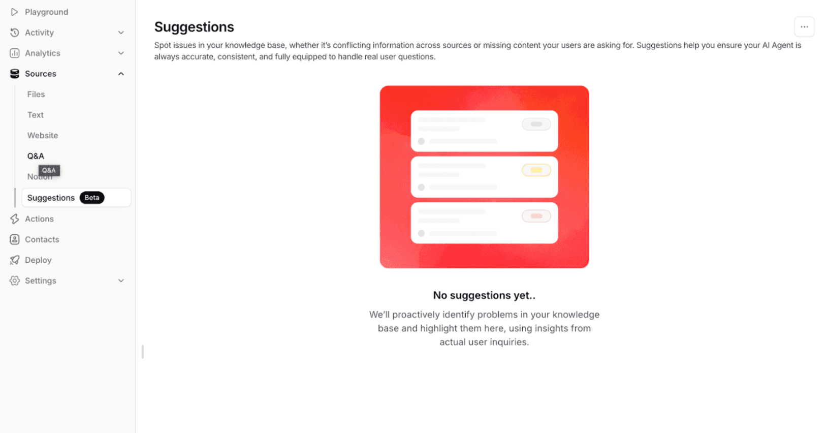 Dentro de esta capa, Chatbase ha incorporado una funcionalidad especialmente interesante: Suggestions.