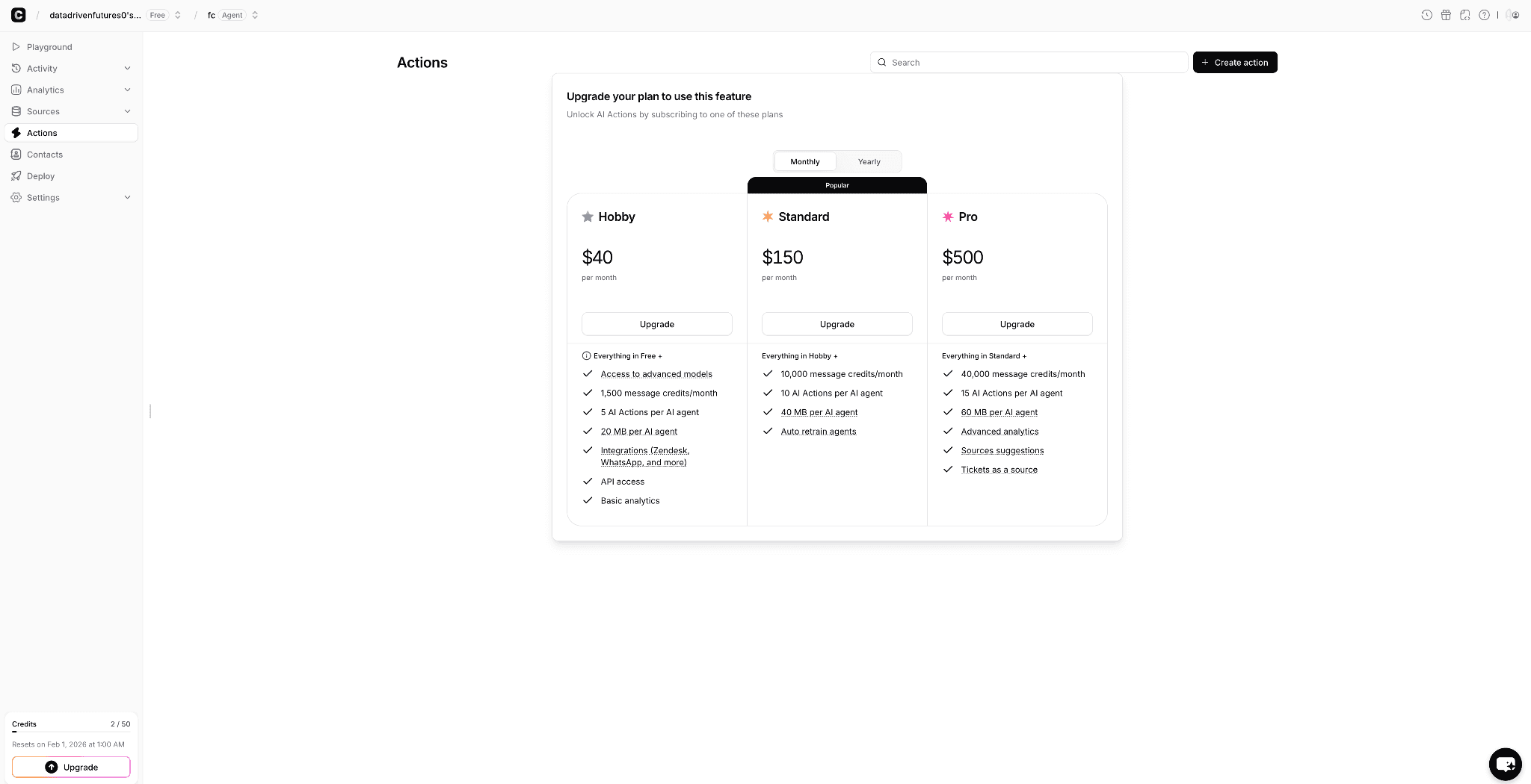 Si el modelo de precios de Chatbase ya está definido por el uso de créditos, no parece coherente añadir, además, limitaciones por funcionalidad. Este enfoque introduce fricción innecesaria y dificulta que el usuario experimente el valor de la plataforma.
